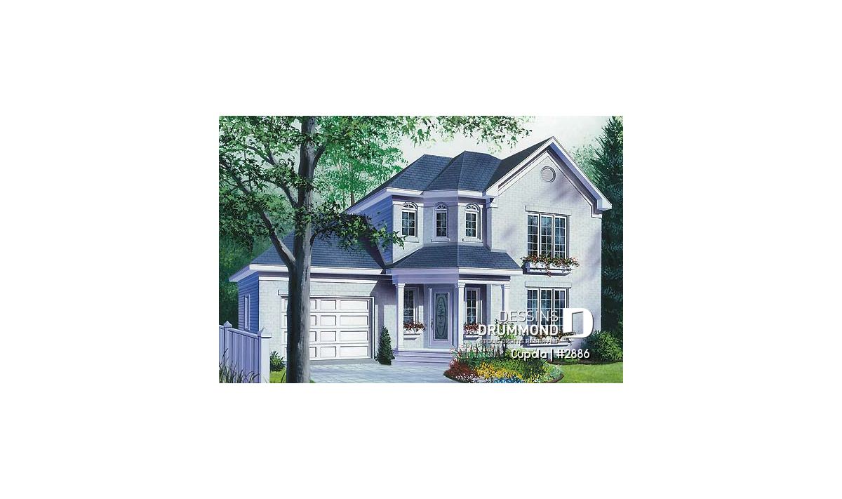 Vue avant - MODÈLE DE BASE - Plan maison 3 chambres avec garage, salle de lavage au rez-de-chaussée - Cupola