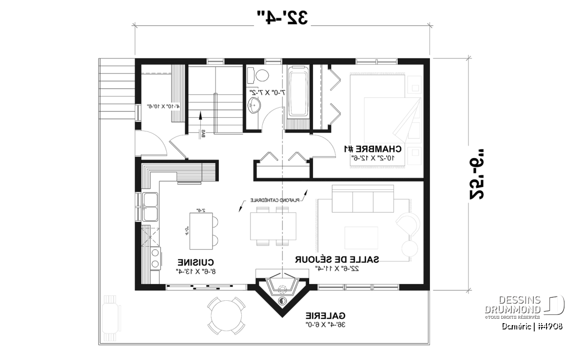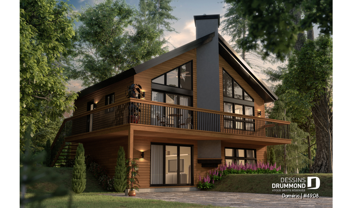 Le plan de maison DAMÉRIC (#4908) nous propose une maison de style chalet champêtre avec immense fenestration et 1 648 pieds carrés.