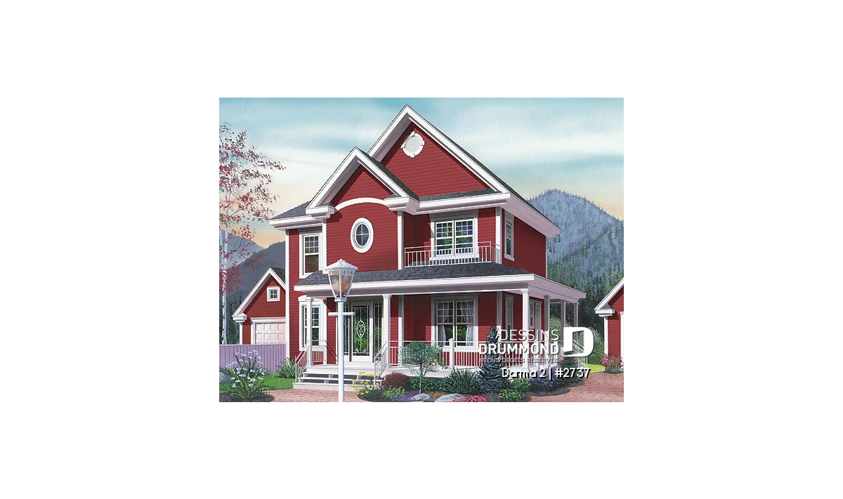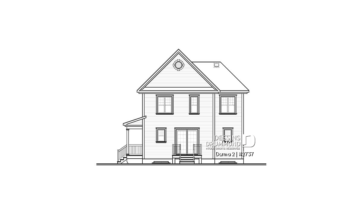 D’un charme incontestable, ce cottage aux dimensions moyennes s’impose avec des pignons significatifs en façade principale et des toitures adoucies aux extrémités. Une galerie couverte joignant l’entrée avant à l’entrée de service permettra de s’y déplacer à l’abri des intempéries.