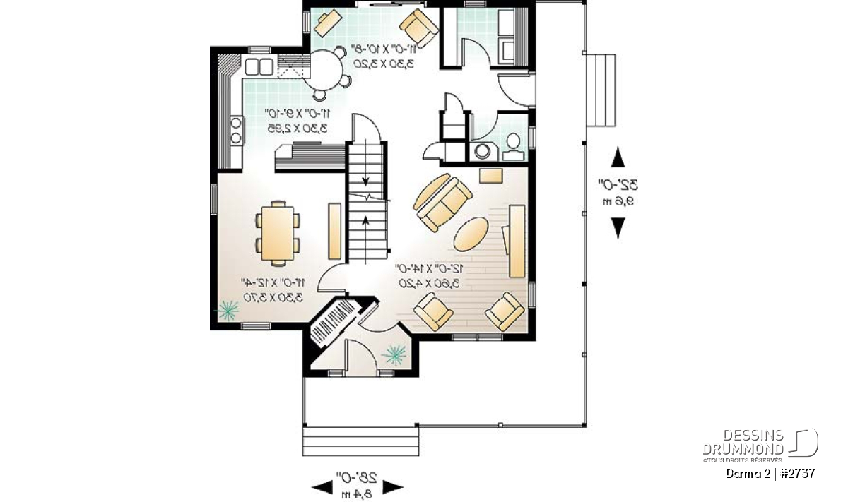 Au rez-de-chaussée, une buanderie détachée du coin toilette sera très appréciée mais c’est surtout un espace suffisant, attenant à une cuisine/dînette bien pensée, qui par sa versatilité, assurera la popularité du modèle. Par exemple, cet espace, en devenant salle à manger, libère celle-ci placée à l’avant et permet de la convertir en bureau à domicile. Intéressant n’est-ce pas ? !