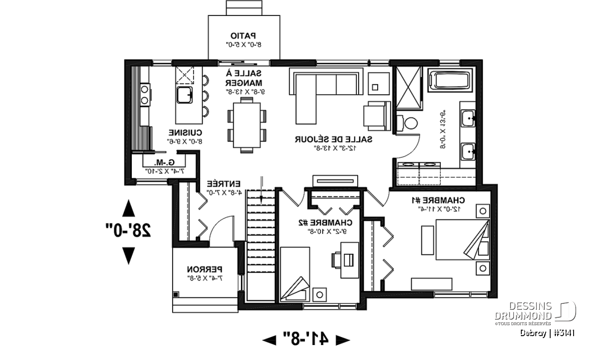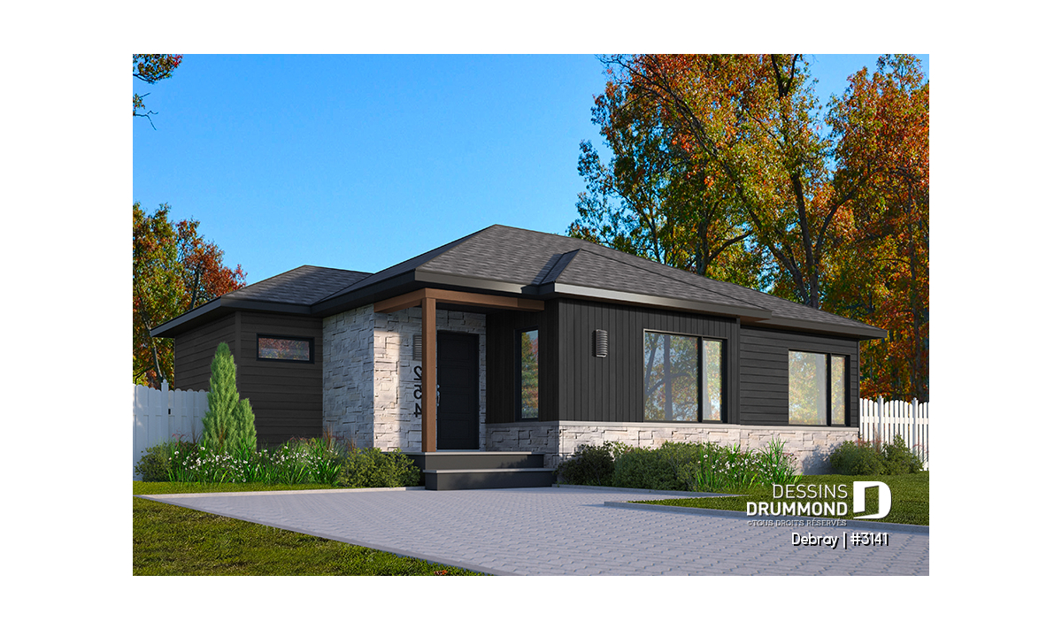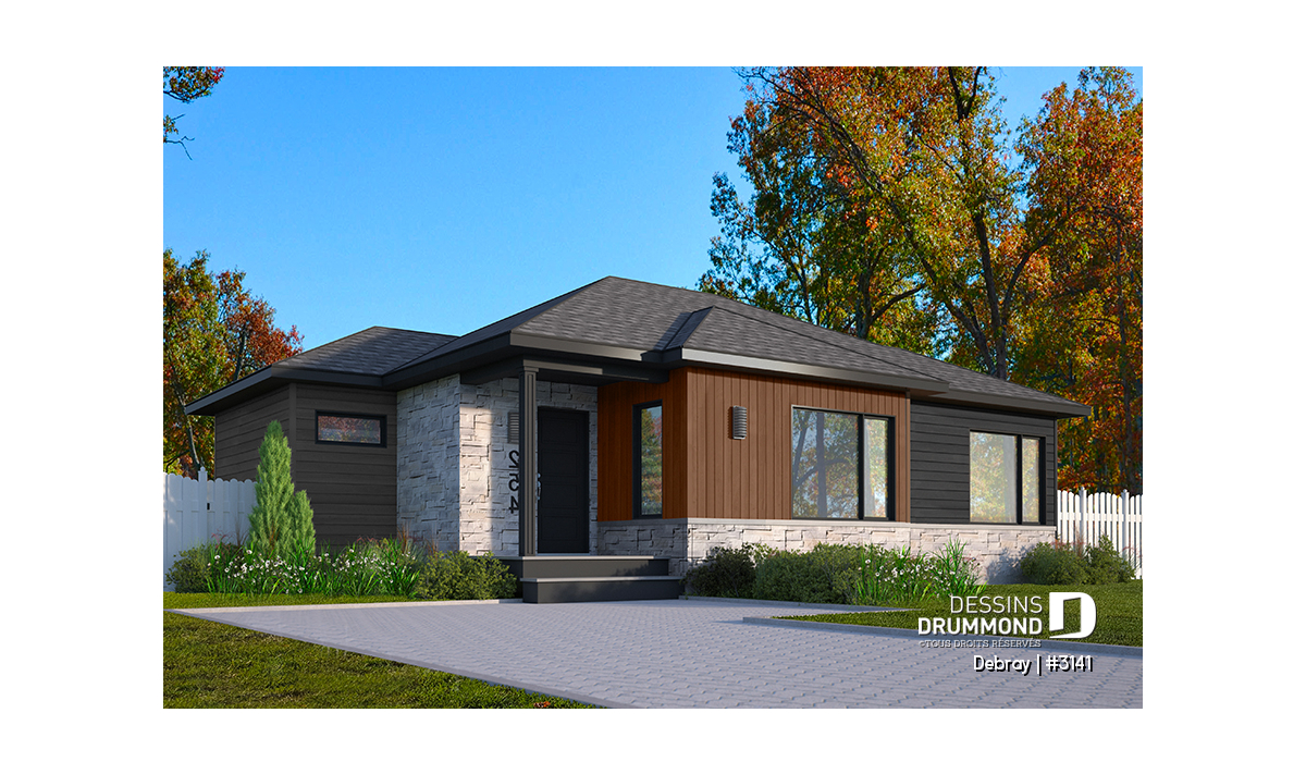 Le plan de la maison DEBRAY (#3141) offre 998 pieds carrés bien pensés. Compacte et moderne, cette maison est conçue pour maximiser l'espace de vie.