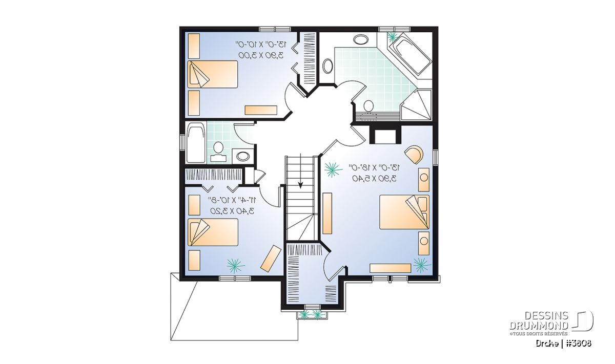 Étage - Plan de maison à étage, chambre des maîtres avec grand walk-in, portes françaises au séjour, 3 chambres - Drake
