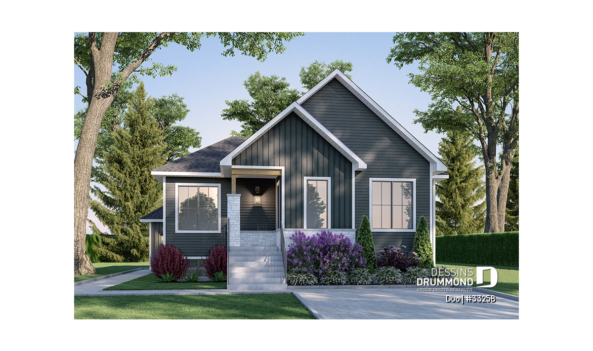 Plan de maison avec possibilité de revenus grâce à l'appartement une chambre prévue au sous-sol.