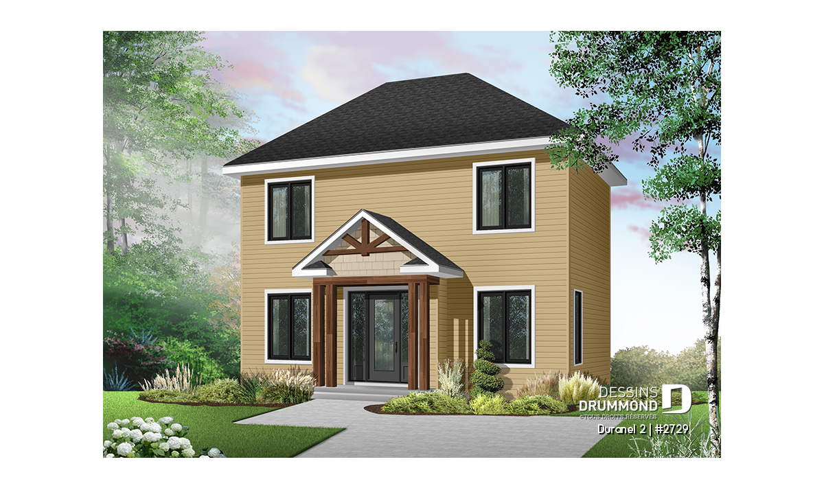 Vous cherchez une maison chaleureuse, pratique et bien pensée pour accueillir votre petite famille ? Le modèle DURANEL 2 (#2729), compact au charme anglais, est un choix parfait, surtout pour les terrains étroits, sans faire de compromis sur l’espace ni sur le confort.