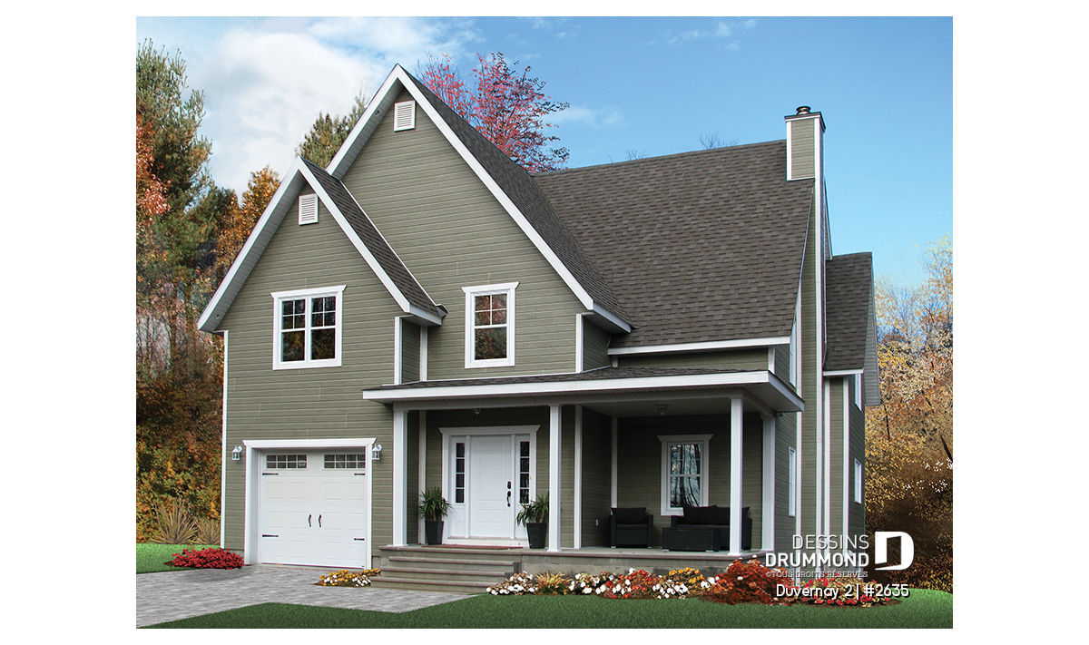 Foyer, Espace boni aménageable, Aire ouverte, Salle de lavage au rez-de-chaussée, Vestibule, Galerie 2-3 côtés, Terrasse abritée, Suite des maîtres à l'étage, Walk-in ch. maîtres, Plafond en pente, Boudoir / Vivoir, Bain et douche séparés, Lavabo double