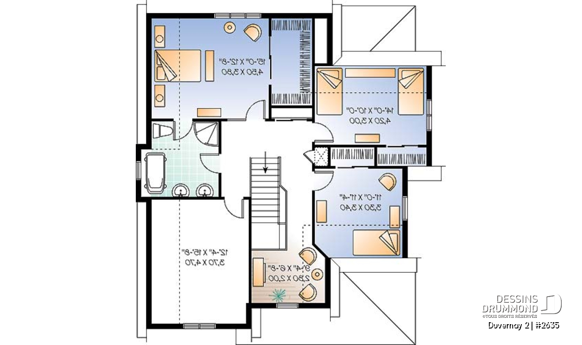 Étage - Plan maison inspiration Tudor, 3 à 4 chambres, salle familiale avec foyer, espace boni - Duvernay 2