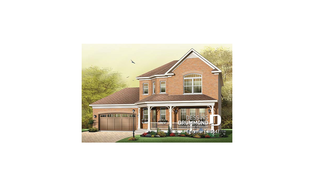 D’abord un modèle fort populaire sous le numéro de plan 2887, le voici maintenant, suite à un léger agrandissement, offert avec garage double, foyer, comptoir lunch et superbe suite chambre des maîtres agrémentée d’une salle de bain privée.