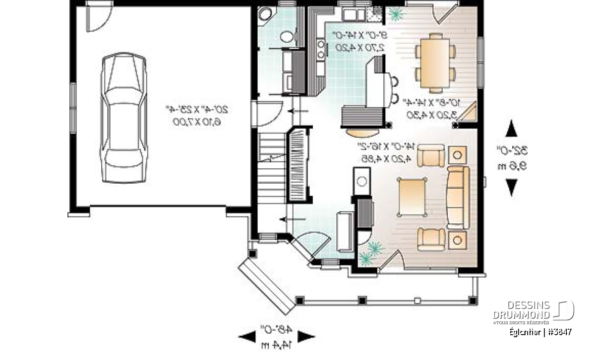 Avec ses 270 pi2 supplémentaires, ce modèle propose maintenant un vestibule dégagé et original côtoyant un foyer ouvert sur trois faces ainsi qu’une garde-robe d’entrée des plus logeables. Ce même gain de surface permet l’obtention d’un comptoir lunch à la cuisine et plus de confort à la salle à manger comme à la salle de séjour pour une satisfaction garantie des propriétaires.