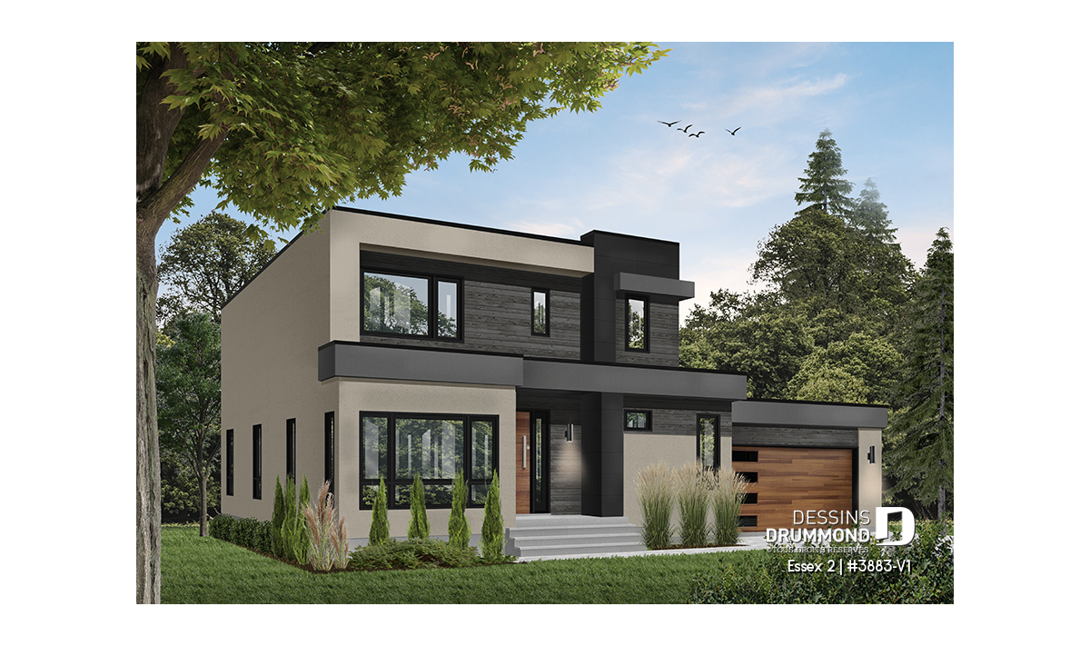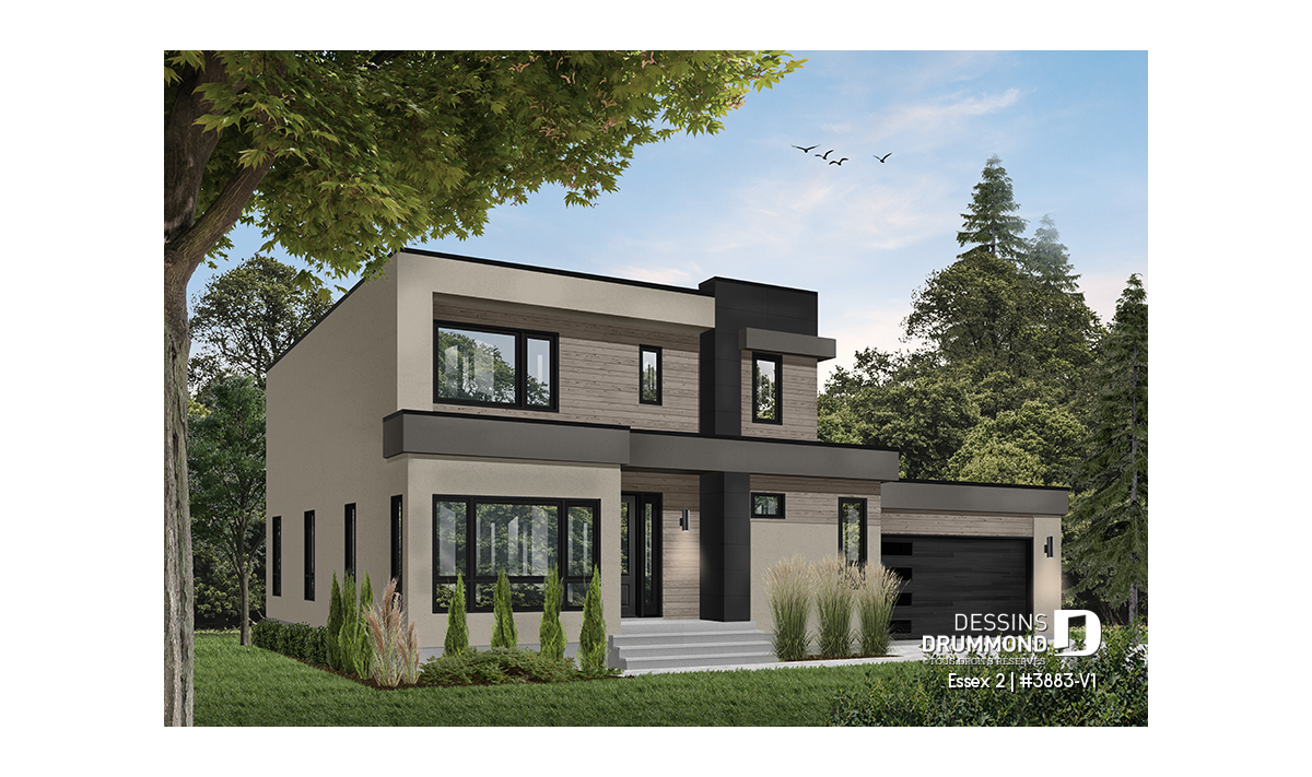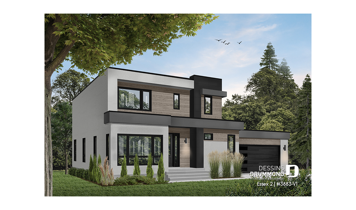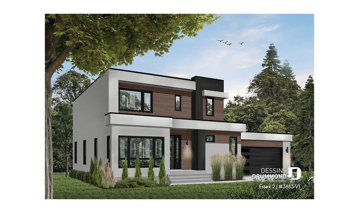 Le look épuré de cet modèle de maison moderne plaira à notre clientèle avant-gardiste qui cherche à se distinguer en s’offrant une maison tendance aux commodités multiples. Offrant 3 à 4 chambres dont une suite chambre des maîtres à l’étage, ce plancher plaira aussi aux familles avec plusieurs enfants ainsi qu’aux familles recomposées.