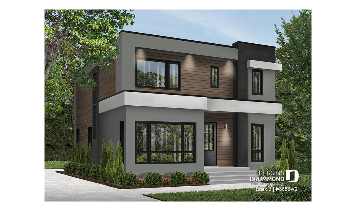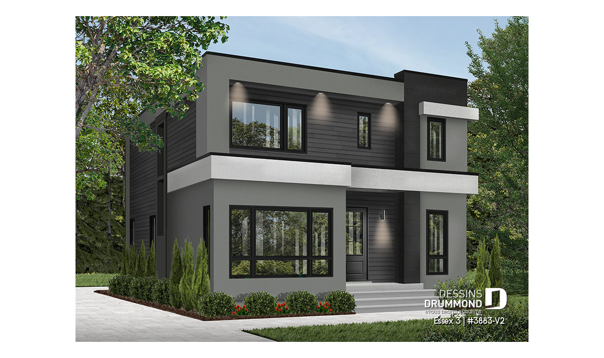Le style épuré de ce modèle cubique plaira à notre clientèle avant-gardiste avec budget restreint qui cherche à se distinguer en s’offrant une maison tendance aux multiples commodités. Offrant 3 à 4 chambres dont une pièce versatile au rez-de-chaussée, ce plancher plaira aussi aux familles avec plusieurs enfants (possibilité de 4 chambres et aussi d’aménager le sous-sol) ainsi qu’aux familles recomposées qui ont besoin de beaucoup d’espace.