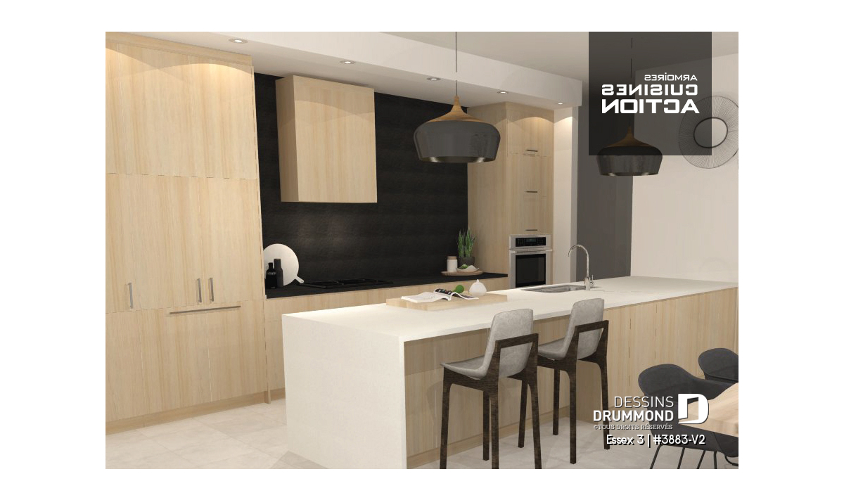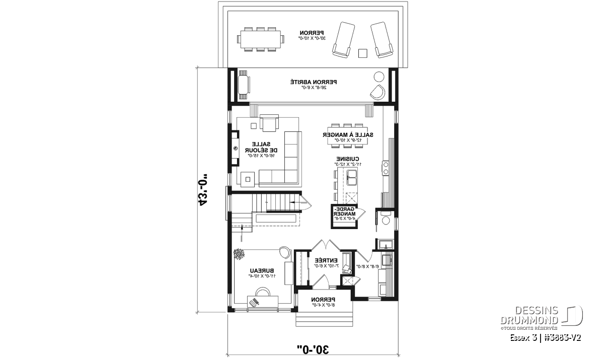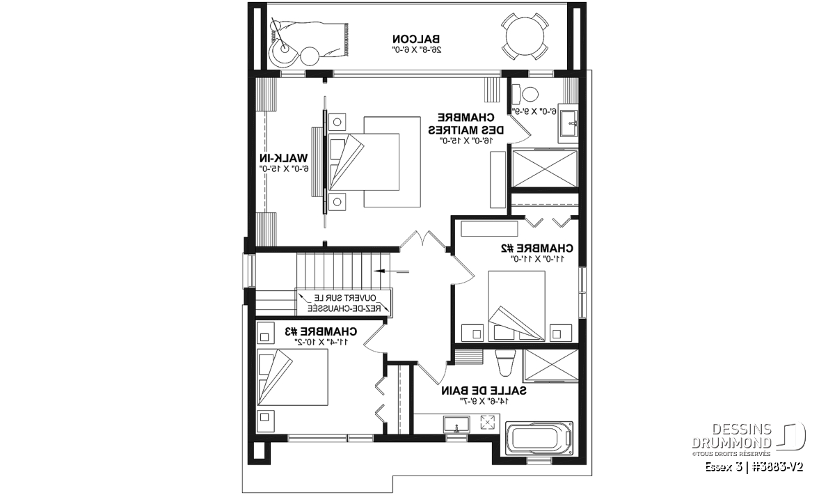 Deux versions avec garage existent de ce modèle, svp consultez nos plans 3883 et 3883-V1 si vous recherchez ce type de plan.