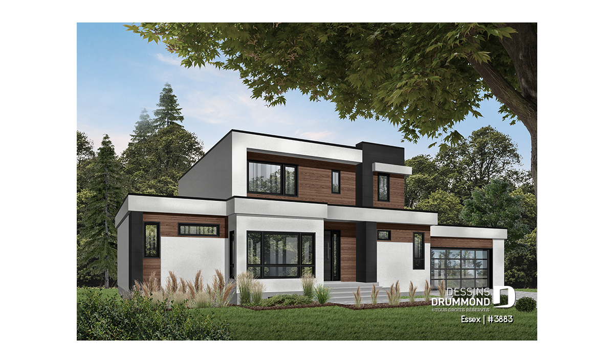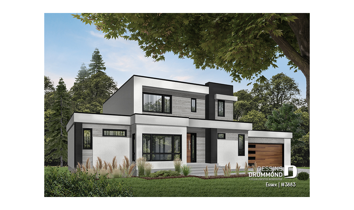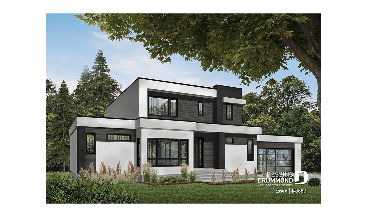 Maison contemporaine de style cubique, avec garage double.