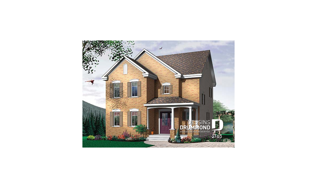 Plan de maison d'inspiration anglaise avec 3 chambres et façade en brique!