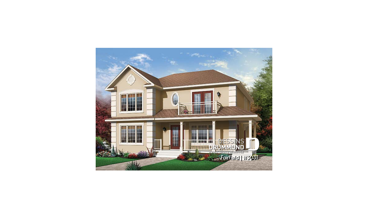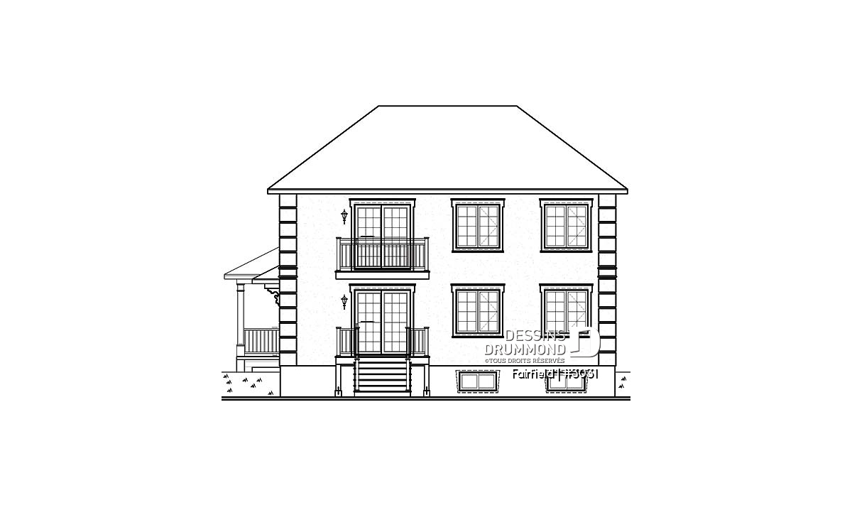 Vue avant - MODÈLE DE BASE - Plan de duplex 5 et demi (5 1/2) de style Européen offrant 3 chambres et buanderie par unité. - Fairfield