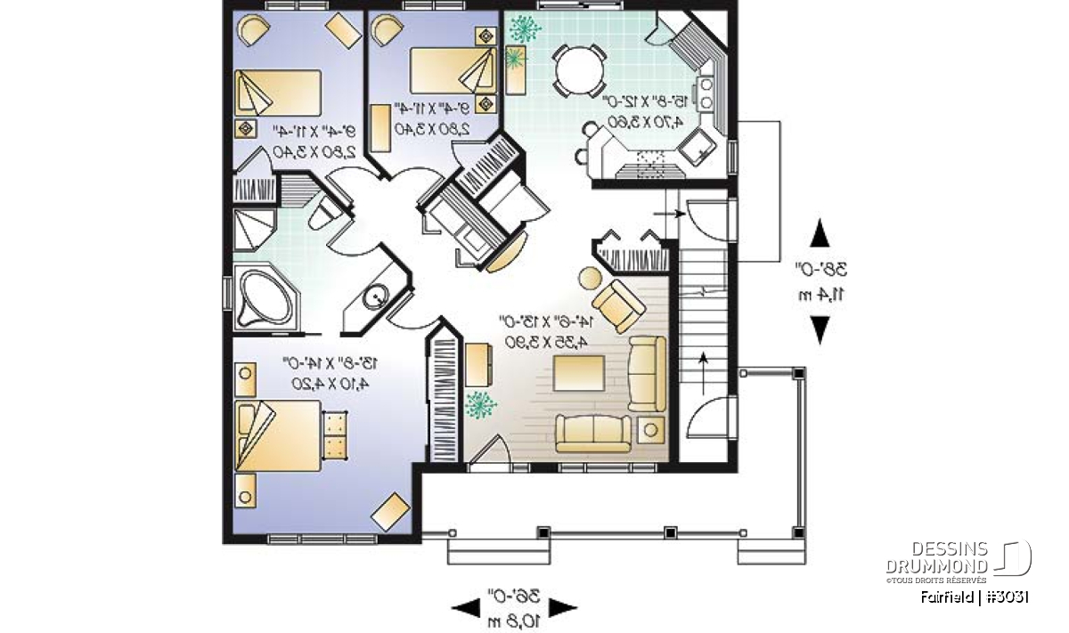 Plan de duplex 5 et demi (5 1/2) de style Européen offrant 3 chambres et buanderie par unité.