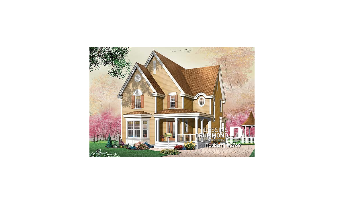 Vue avant - MODÈLE DE BASE - Plan de maison d'inspiration Tudor, 3 chambres, cuisine avec garde-manger, salle de lavage à l'étage - Flaubert