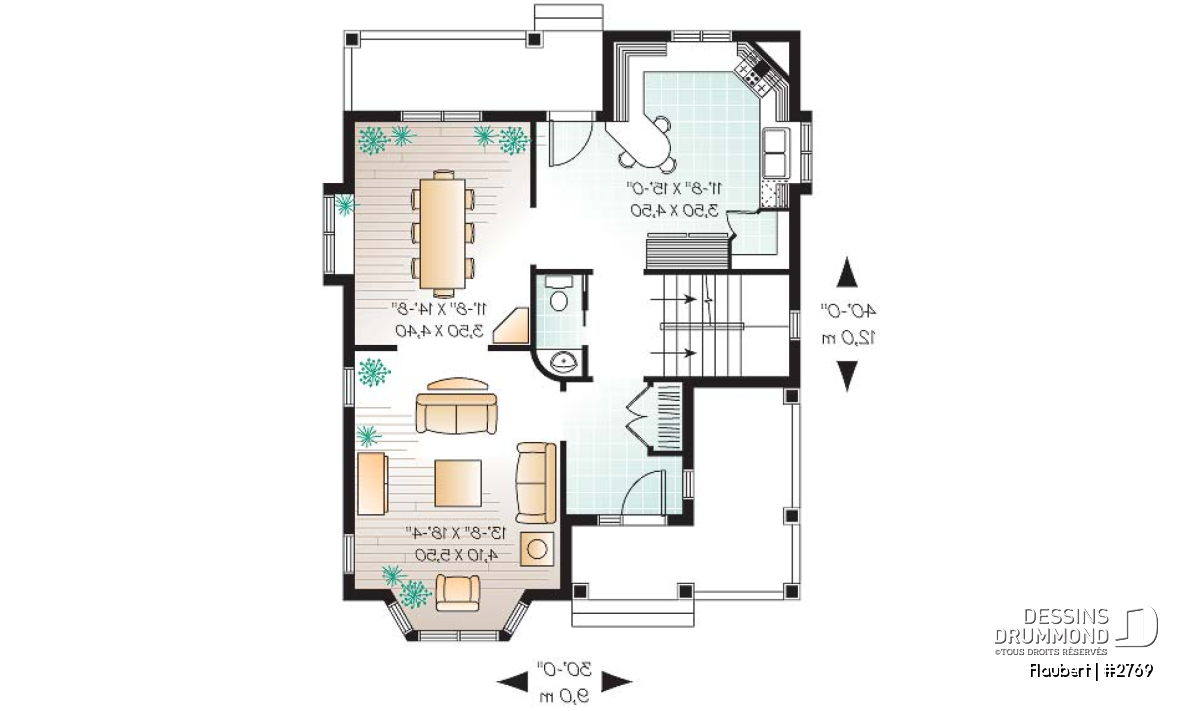 Plan de maison d'inspiration Tudor avec espaces intérieurs confortables et bien éclairés