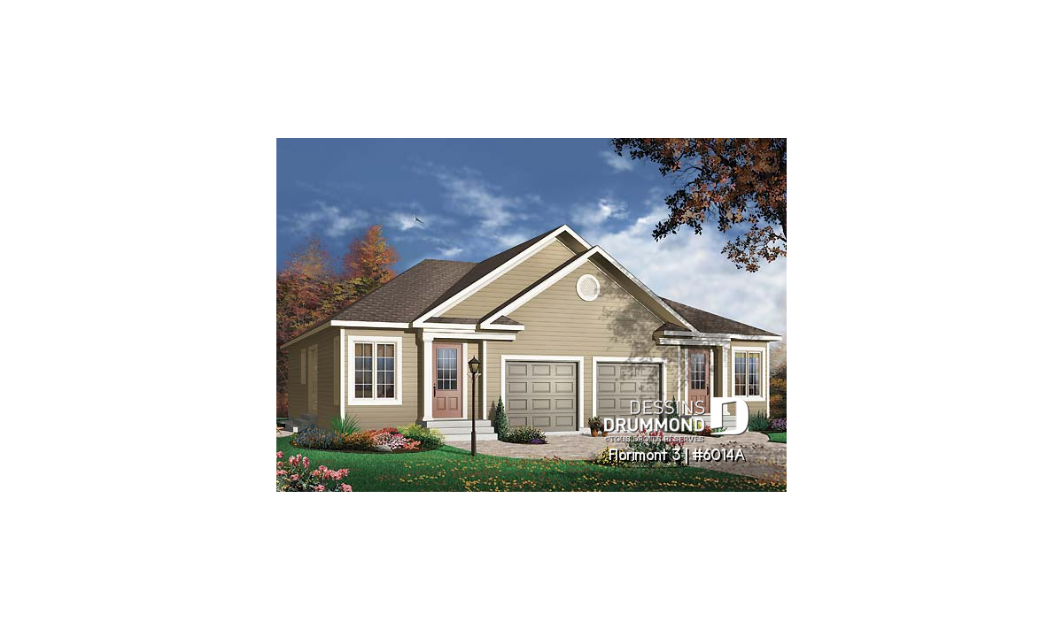Jumelé d'approche budgétaire avec garage pour chaque unité.