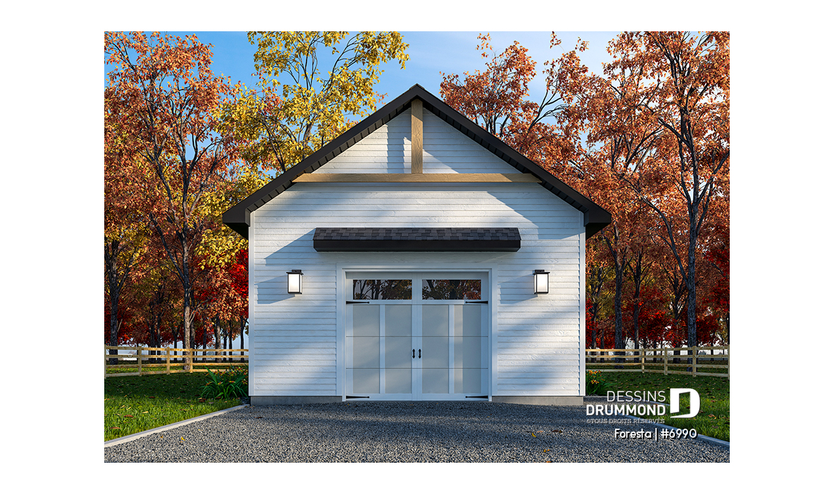 Avec sa composition sobre, ses lignes épurées et son esthétique chaleureuse, ce garage farmhouse moderne s’intègre harmonieusement à une grande variété de résidences, en particulier celles de style champêtre, rustique, farmhouse traditionnel ou modernisé. Polyvalent, robuste et facile à construire, il représente un choix idéal pour compléter élégamment votre propriété.