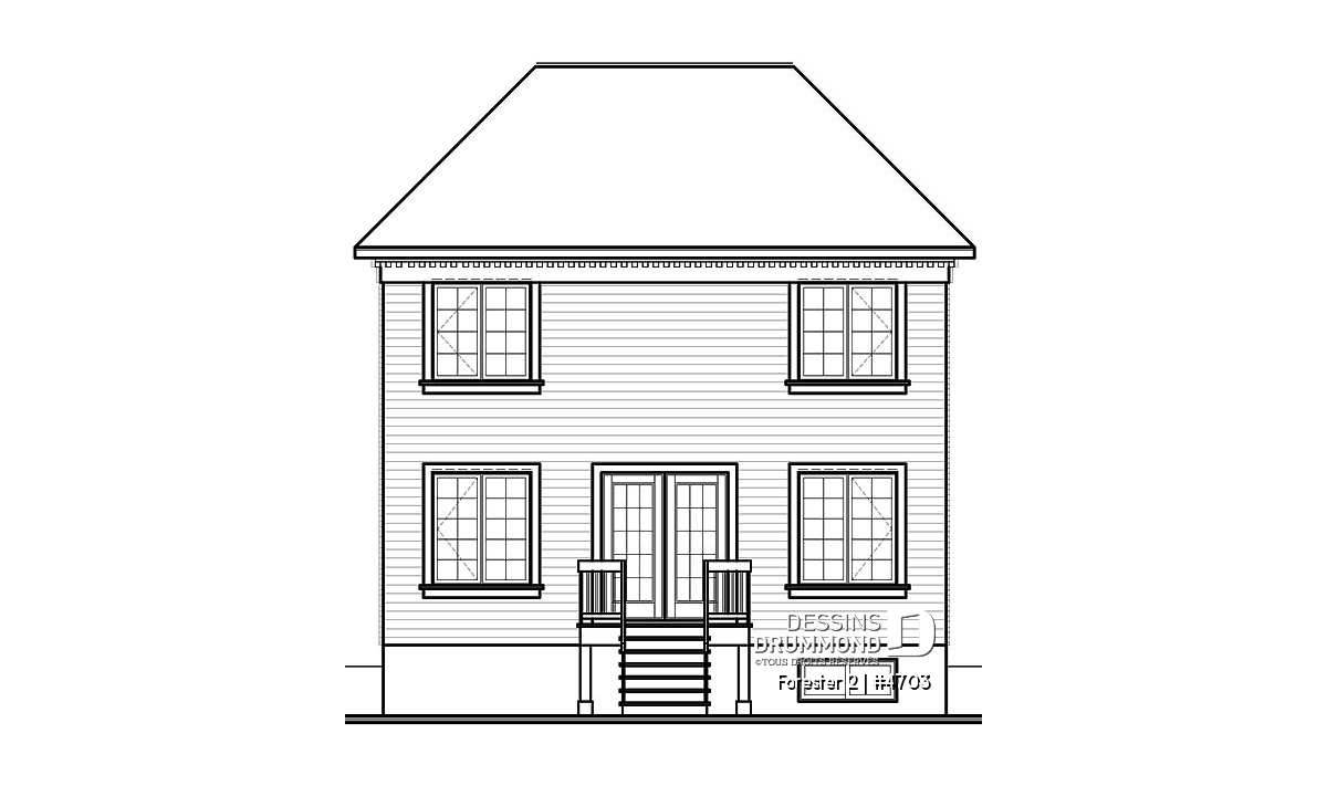 Vue avant - MODÈLE DE BASE - Plan de cottage classique, 3 chambres, fenestration abondante, perron abritée - Forester 2