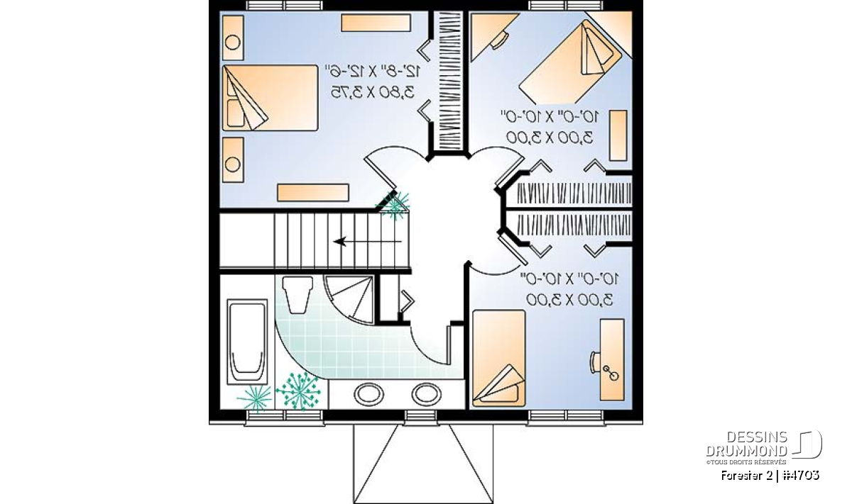 Étage - Plan de cottage classique, 3 chambres, fenestration abondante, perron abritée - Forester 2