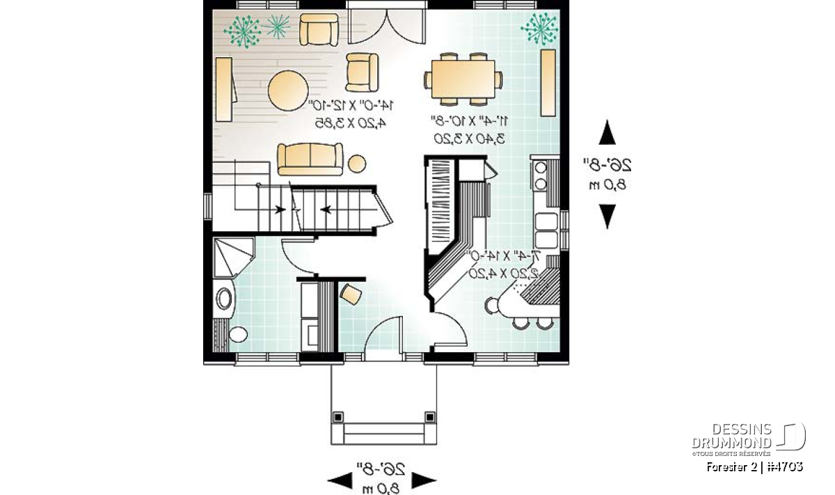 Rez-de-chaussée - Plan de cottage classique, 3 chambres, fenestration abondante, perron abritée - Forester 2