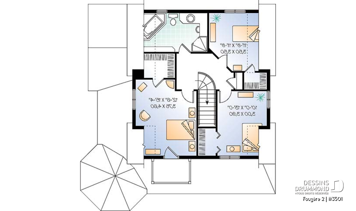Plan de maison champêtre d’esprit loyaliste avec 3 chambres