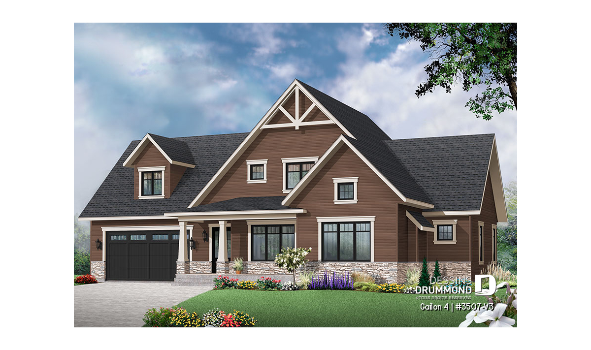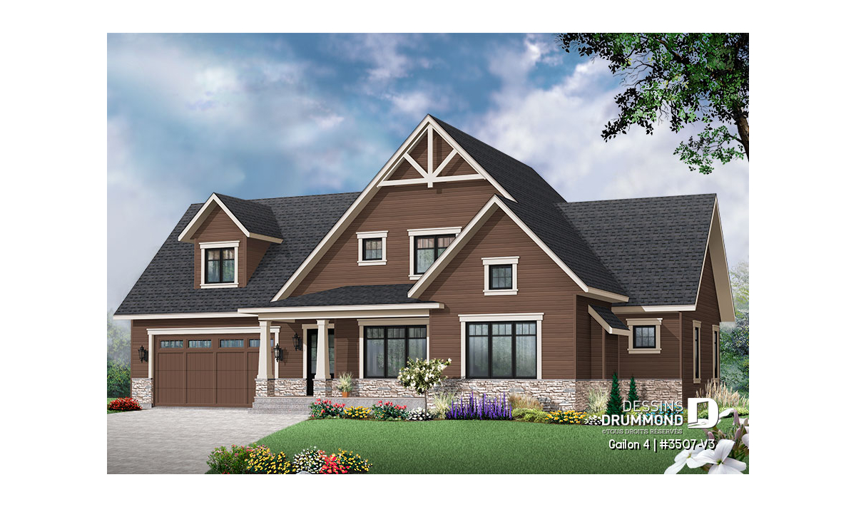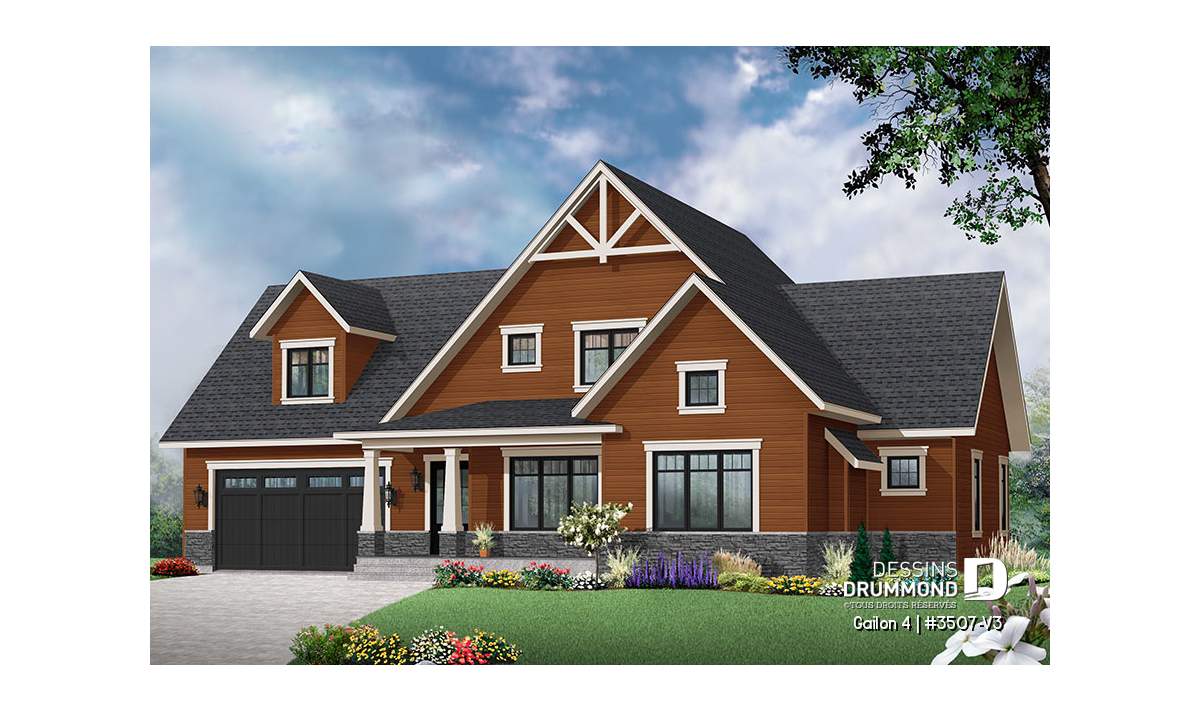 Conçu à partir du très populaire plan champêtre 3507, ce modèle version se veut d’un caractère tout à fait unique avec son garage double et son extérieur véritablement chaleureux.