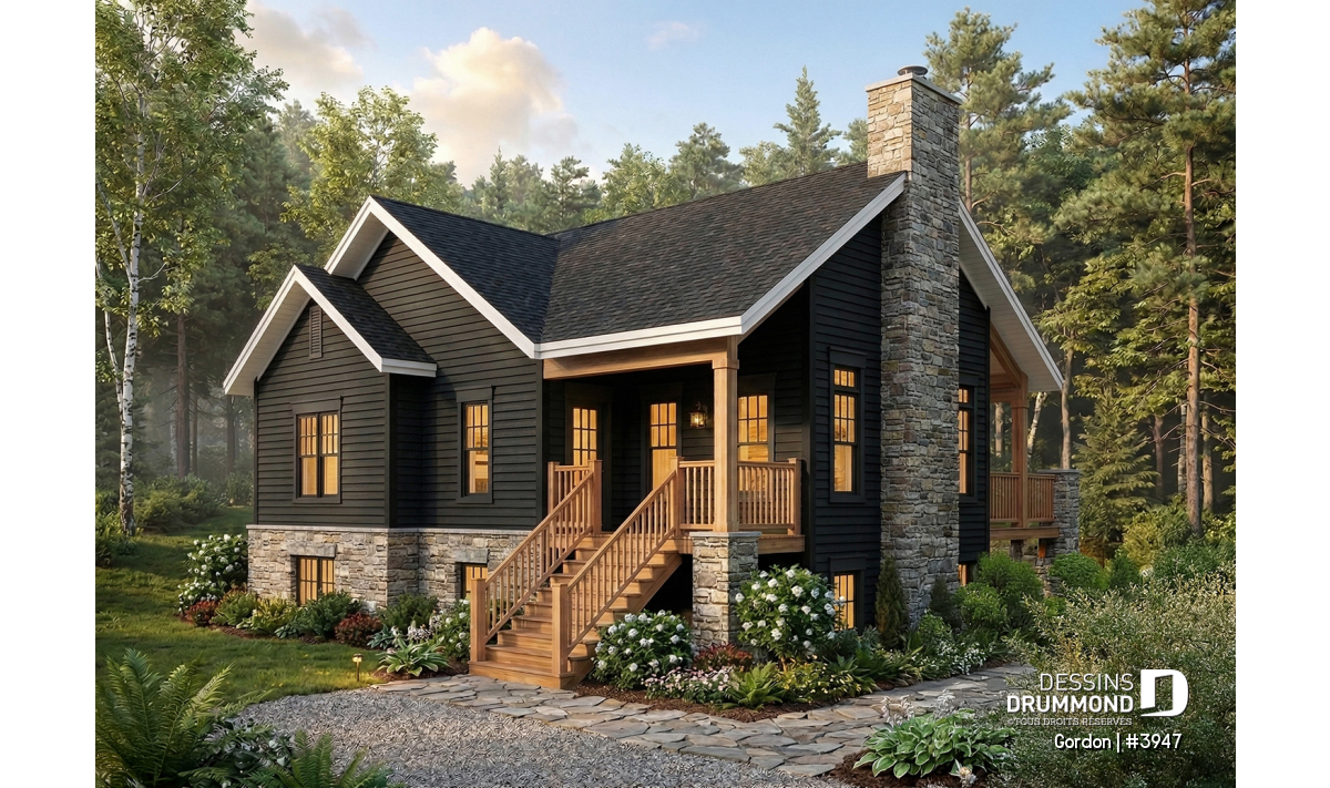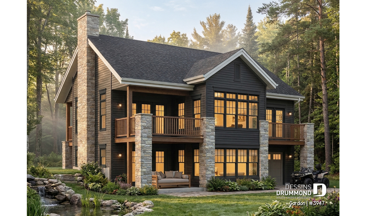 Le GORDON (#3947) est un plan de maison plain-pied de style moderne rustique qui combine parfaitement design, confort et fonctionnalité. Conçu pour maximiser la lumière naturelle et le lien avec l’extérieur, ce modèle propose 1 200 pi² au rez-de-chaussée ainsi que 945 pi² supplémentaires au rez-de-jardin. Il offre ainsi un aménagement équilibré, parfaitement adapté aux modes de vie d’aujourd’hui.