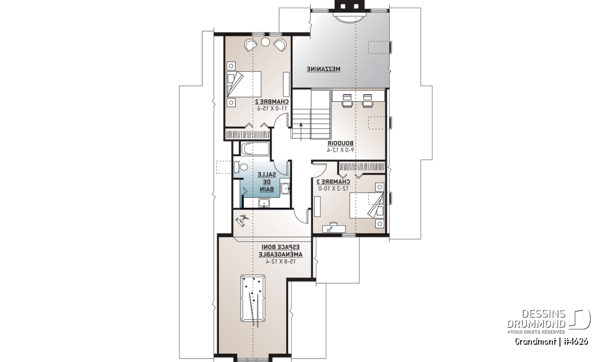 Foyer, Mezzanine, Vue paronamique, Solarium, Salle de lavage au rez-de-chaussée, Ilôt, Terrain étroit, Dinette / Coin déjeuner, Boudoir / Vivoir, Espace boni aménageable, Suite des maîtres au rdc, Plafond cathédrale, Salle de jeux
