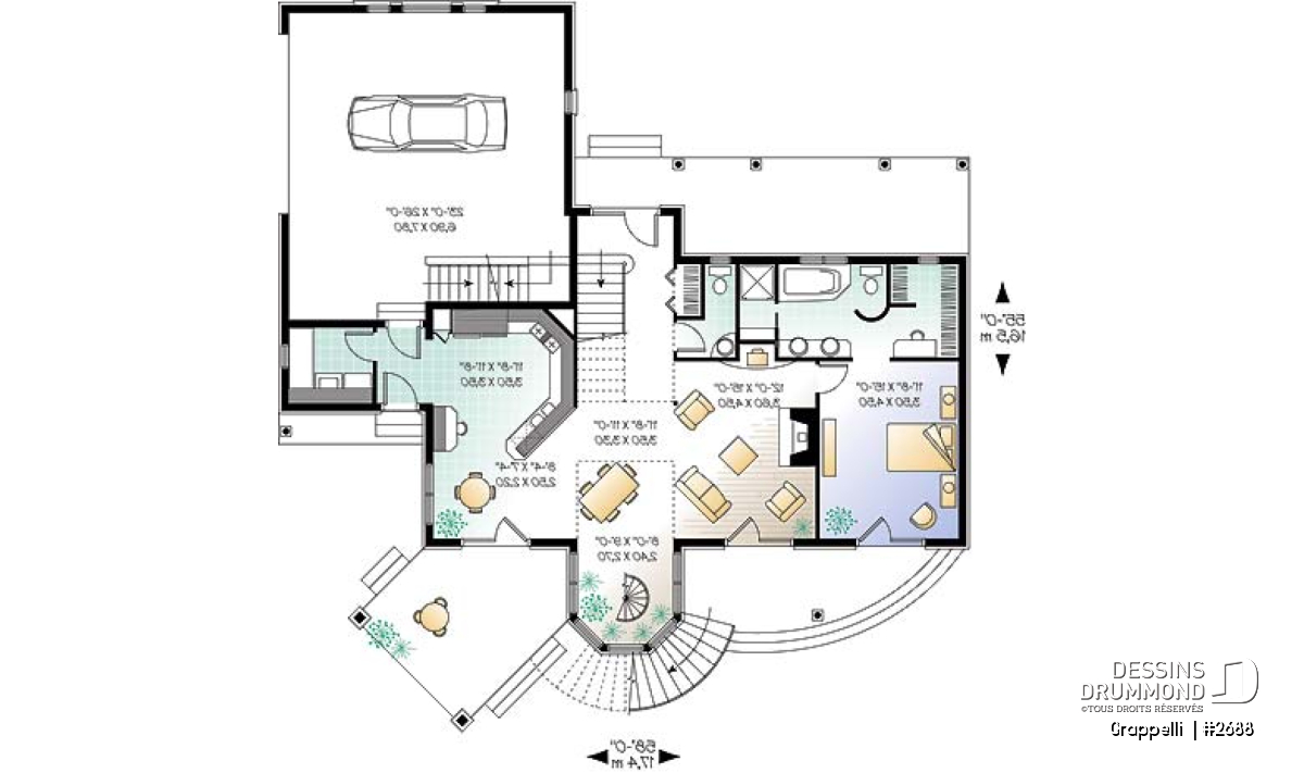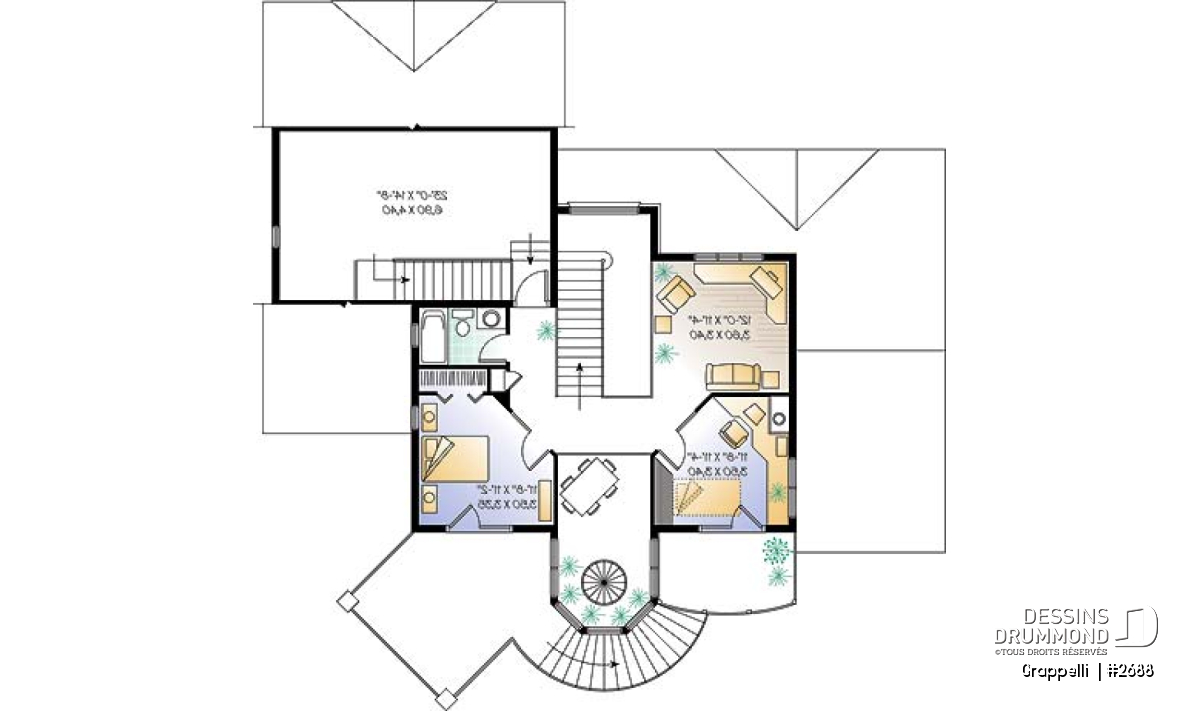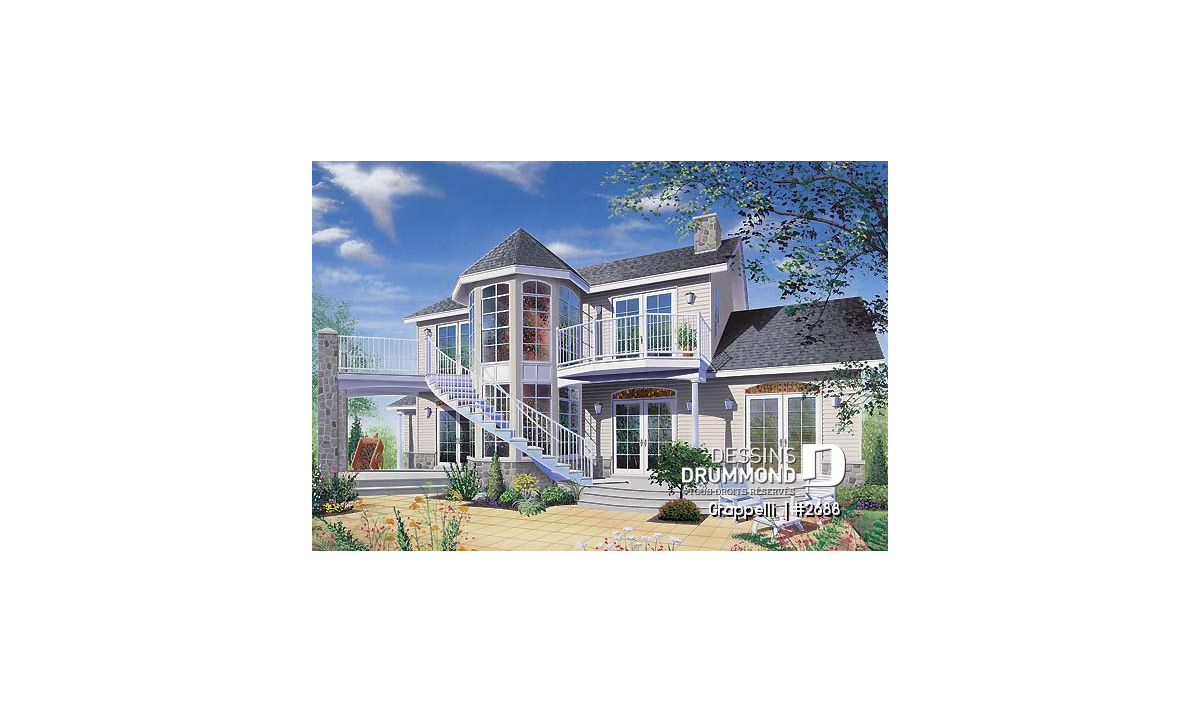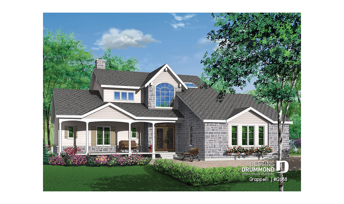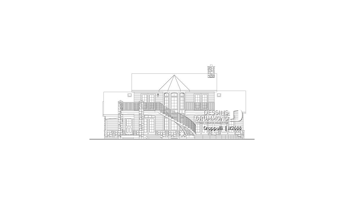 S’il est un plan qui a plu à nos voisins américains dès son arrivée sur le marché, c’est bien ce modèle 2688 pour lequel le concepteur a fait des pieds et des mains afin de rencontrer les requêtes émises par les dirigeants d’un concours américain. Ce concours visait à satisfaire les besoins de nombreux « boomers » en réalisant un plan de maison de format plus abordable et à l’intérieur de 2000 pi2 habitables excluant garage, espace boni et sous-sol. Une demande très très fréquente en ce moment aux États-Unis voire même de plus en plus au Canada.