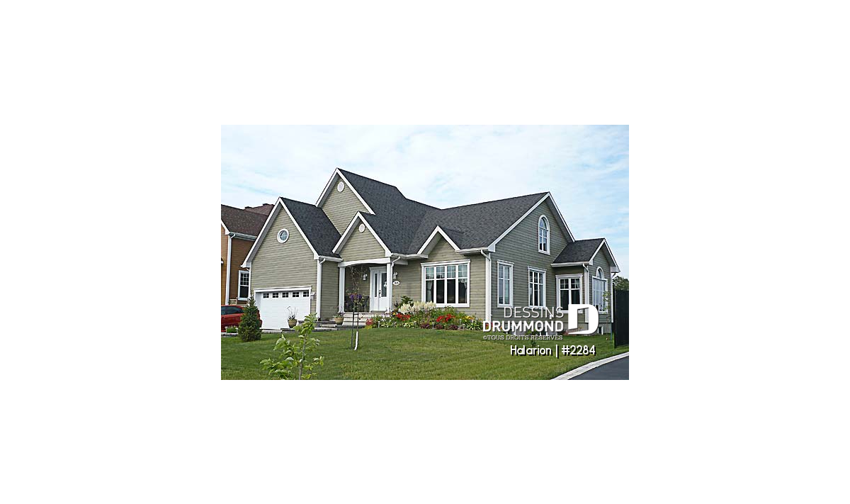 Plain-pied champêtre lumineux avec espace boni, garage, plafond cathédrale et sous-sol évolutif