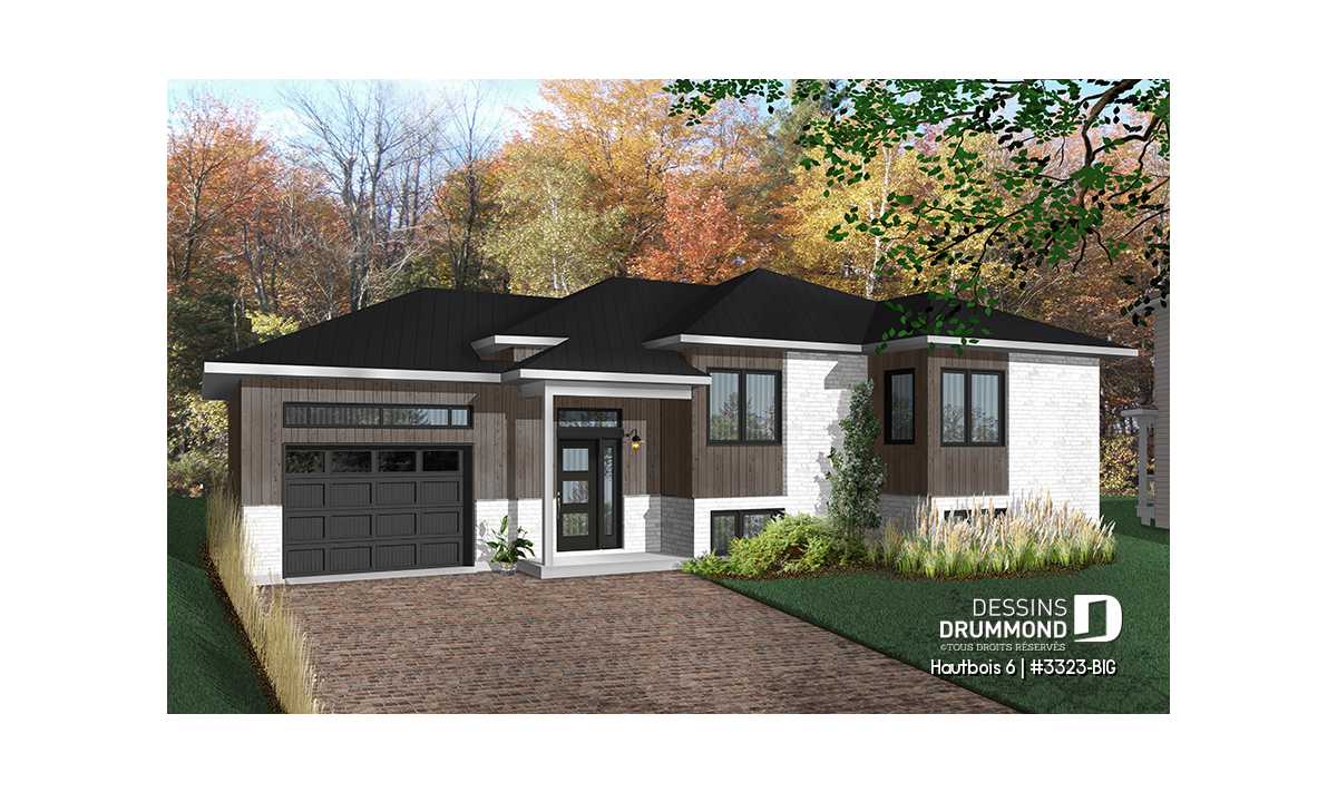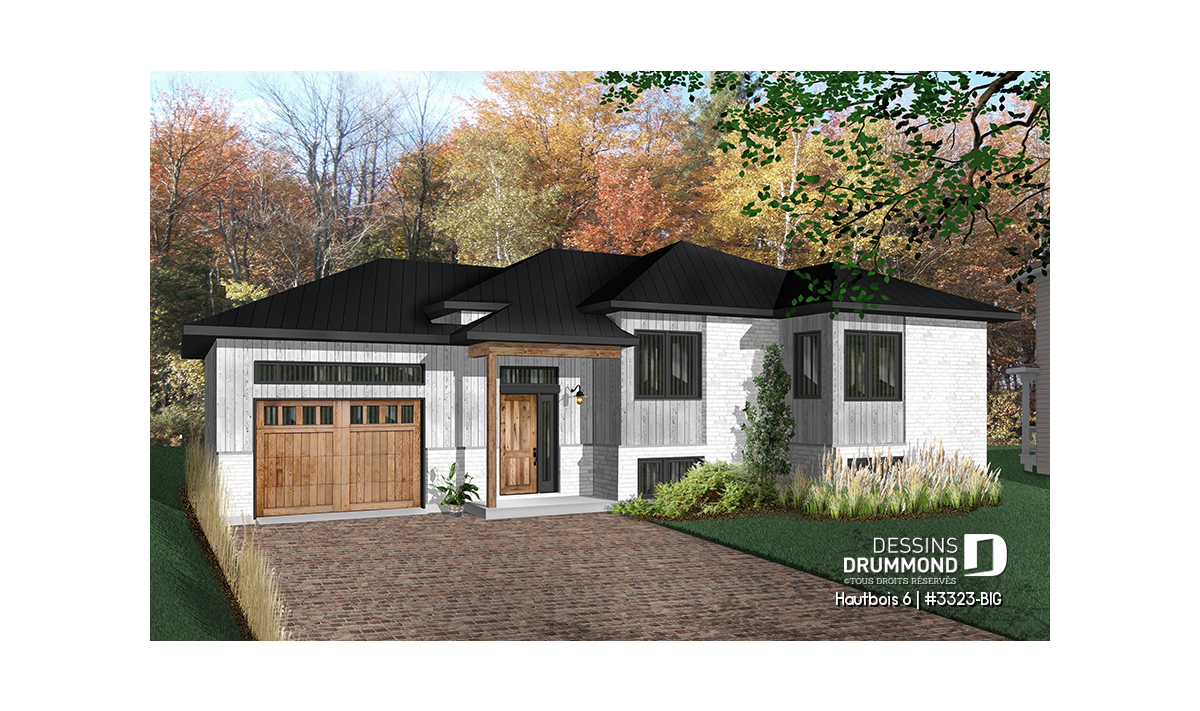 Maison contemporaine à entrée split avec garage attaché.