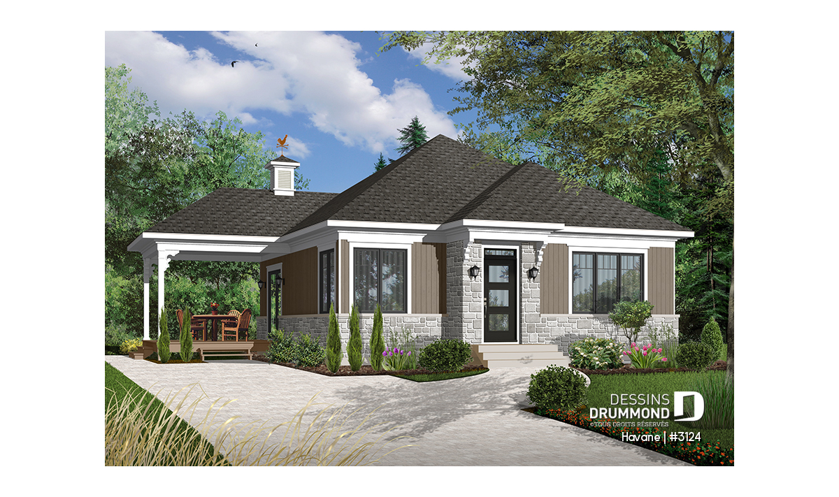 Plan de maison de style transitionnel, plain-pied 2 chambres avec salle de lavage au rez-de-chaussée!