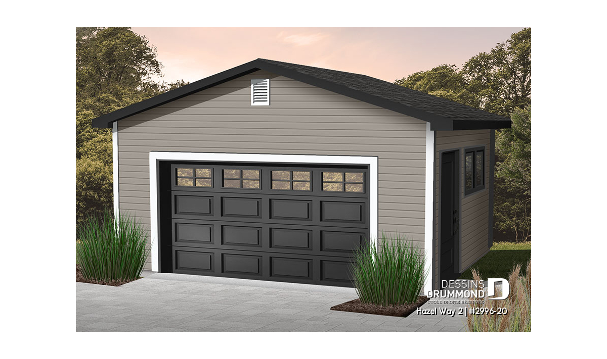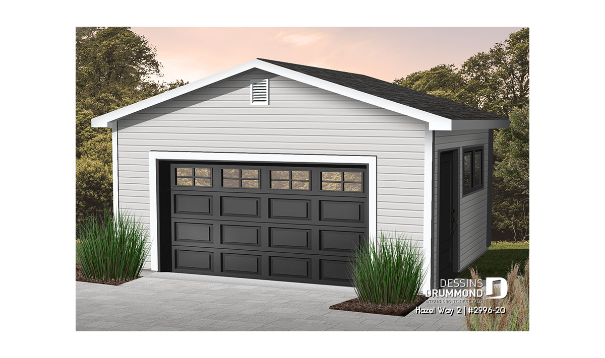 AVANT DE PLACER VOTRE COMMANDE, il est de votre responsabilité de faire les vérifications nécessaires auprès de votre municipalité concernant les restrictions se rattachant à l'ajout d'un garage détaché sur un terrain, car NOS PLANS NE SONT NI REMBOURSABLES ET NI ÉCHANGEABLES. Plusieurs municipalités permettent l'ajout d'un garage détaché, mais imposent à celui-ci un format maximal. Le fait de vous enquérir de telles informations vous permettra de mieux cibler le format de garage possible à aménager.