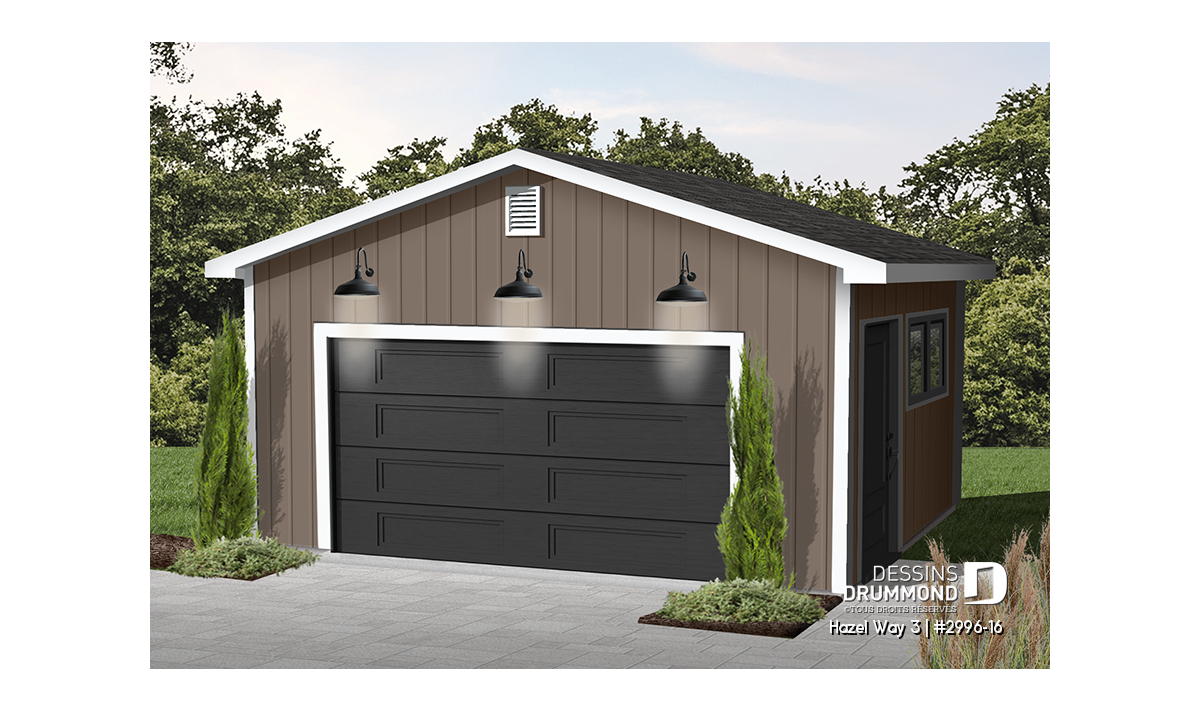 Lorsque l'espace est limité, ce garage simple de 16 pieds de large et 24 pieds de profondeur fait le travail. Parfait pour le stationnement et un peu de rangement!