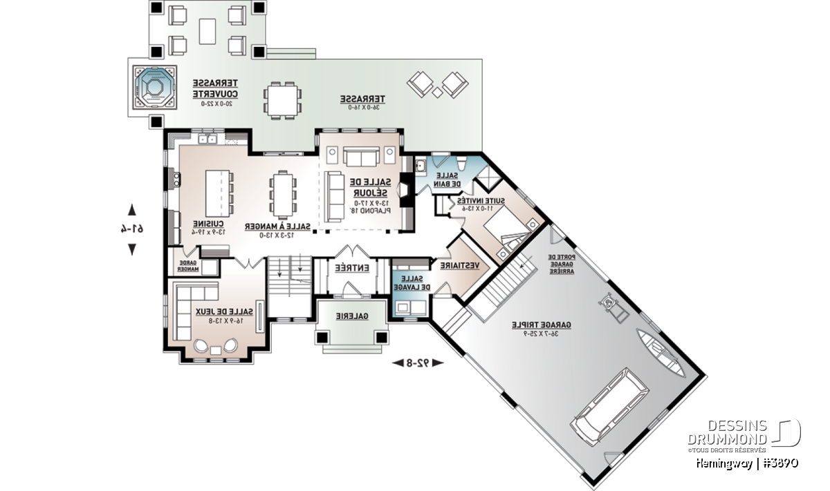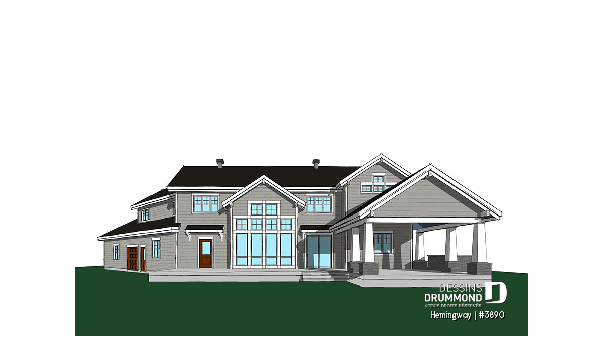 Foyer, Ilôt, Mezzanine, Aire ouverte, Plafond à plus de 8', Suite d'invités, Terrasse abritée, Suite des maîtres à l'étage, Garde-manger, Vestiaire, Chambres séparées, Lavabo double, Bain et douche séparés, Plafond cathédrale, Walk-in double ch. maîtres, Salle de jeux, Bureau / Salle étude, Salle de lavage au rez-de-chaussée