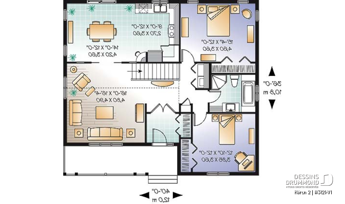 Largeur 40'0" Profondeur 36'0"