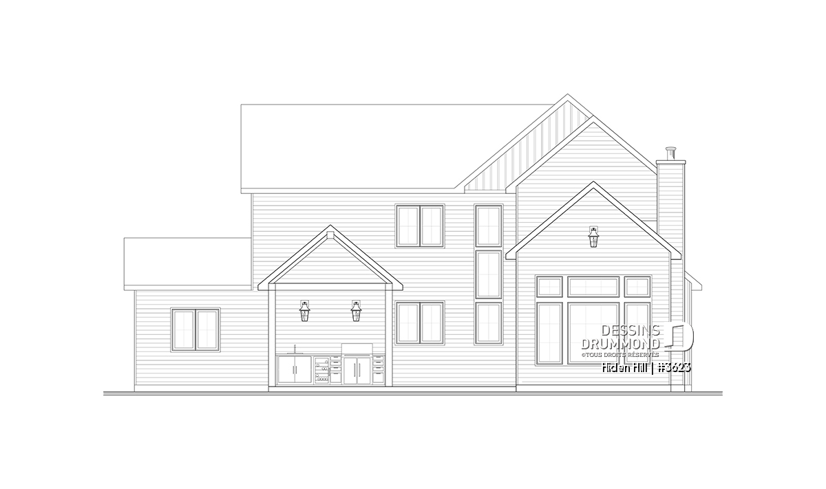 Aire ouverte, Cuisine extérieur, Salle de lavage au rez-de-chaussée, Suite des maîtres à l'étage, Vestiaire, Terrasse abritée, Plafond cathédrale, Garde-manger, Foyer, Tablettes, Walk-in ch. maîtres, Bain et douche séparés, Lavabo double, Arche, Vue paronamique, Plafond à plus de 8'