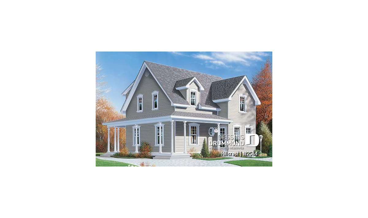 Plan de maison 3 chambres, style champêtre canadien, îlot, buanderie au r-d-c, grande chambre parents