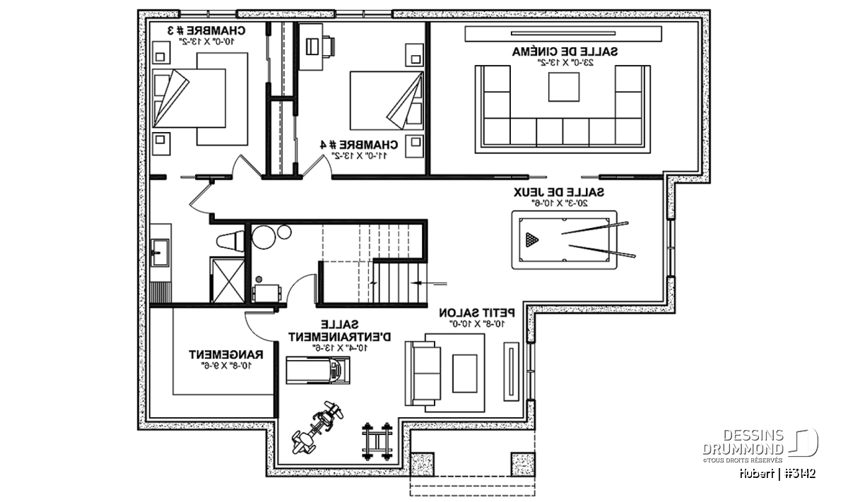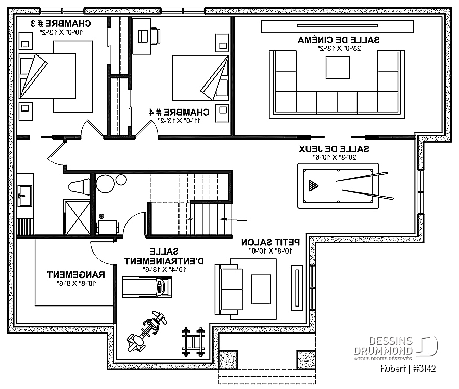 *Si vous souhaitez acheter le plan du sous-sol aménagé, veuillez sélectionner cette option dans le panier d'achat, dans la section "Sélectionner votre fondation". Si vous ne sélectionnez pas cette option, vous recevrez le sous-sol non fini, sans frais additionnel.