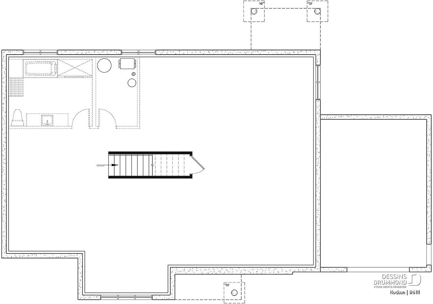 La fondation précisée à cette ligne est incluse dans le plan que vous recevrez, dans le prix du plan ainsi que dans l'estimation du coût de construction SAUF dans le cas d'un sous-sol aménagé. La finition d'un sous-sol aménagé n'est JAMAIS incluse dans notre estimation sauf si avis contraire précisé dans la description du plan et/ou dans la section élément distinctif, sur la page du plan. Un sous-sol aménageable est un sous-sol non-fini, à finir plus tard, selon vos besoins.