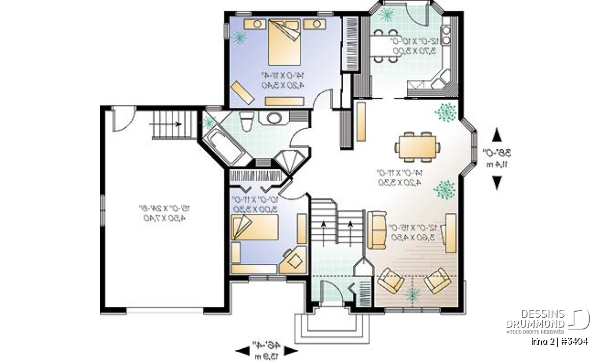 Le garage, pour sa part, assure une certaine logeabilité tout en permettant d’accéder au sous-sol de façon rapide avec sa demi-volée d’escalier attribuable au concept d’entrée à palier.