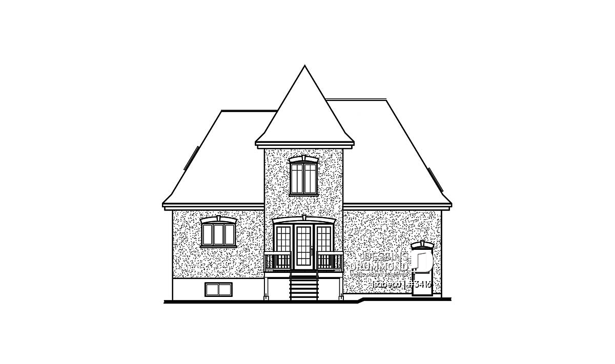 Toujours dans le ton avec ses allures de manoir, ce cottage se fait plutôt imposant avec ses quarante pieds de façade, son perron avant de douze pieds de largeur et son volume central suffisamment élevé.