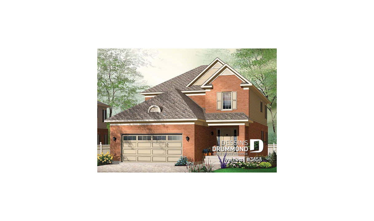 Modèle de maison avec garage double, de seulement 32 pi de façade donc idéal pour terrain étroit.