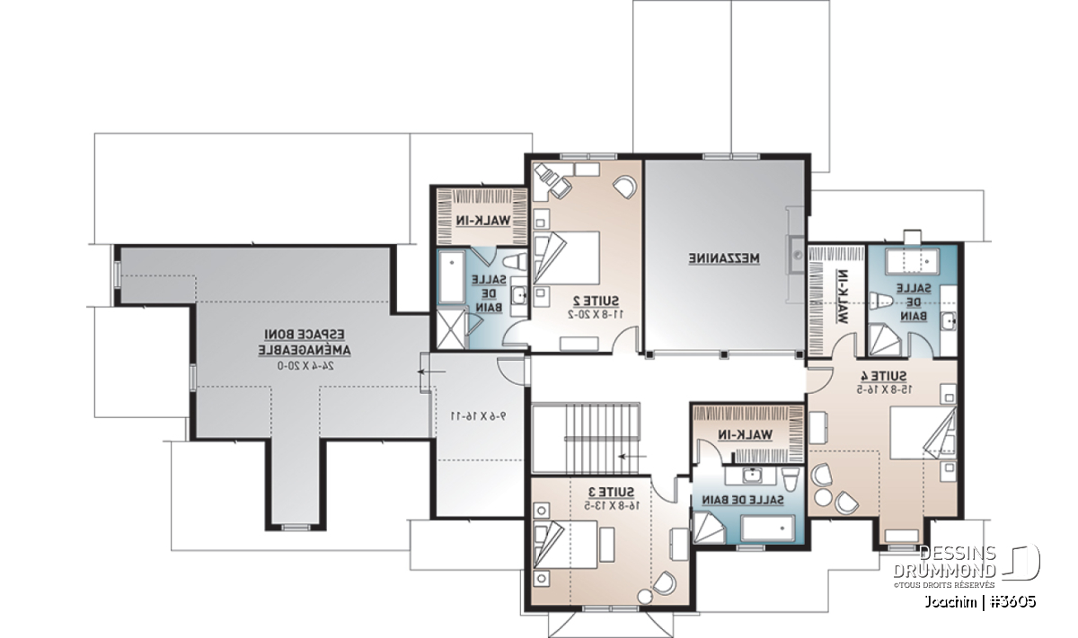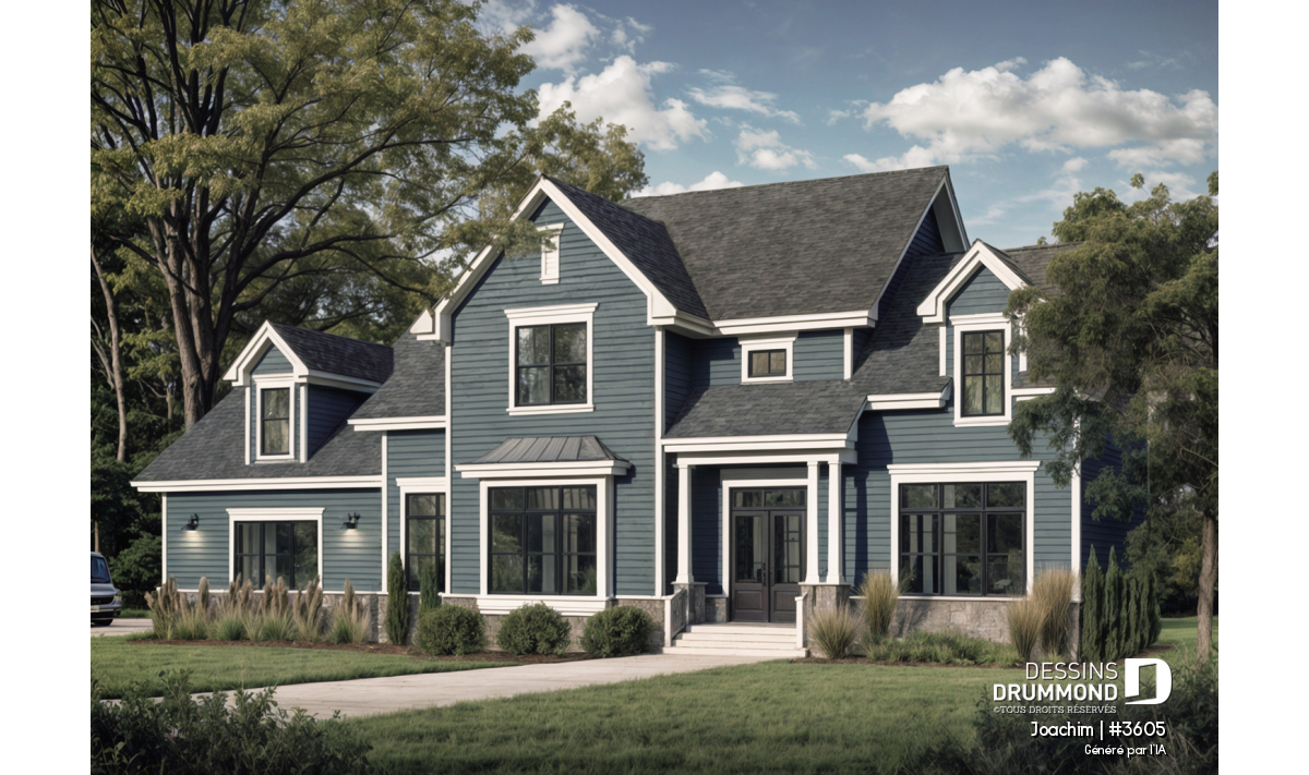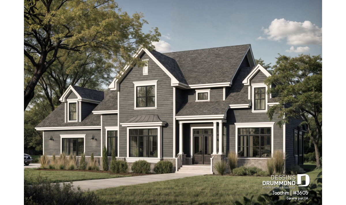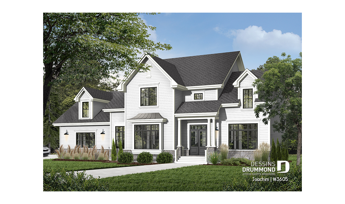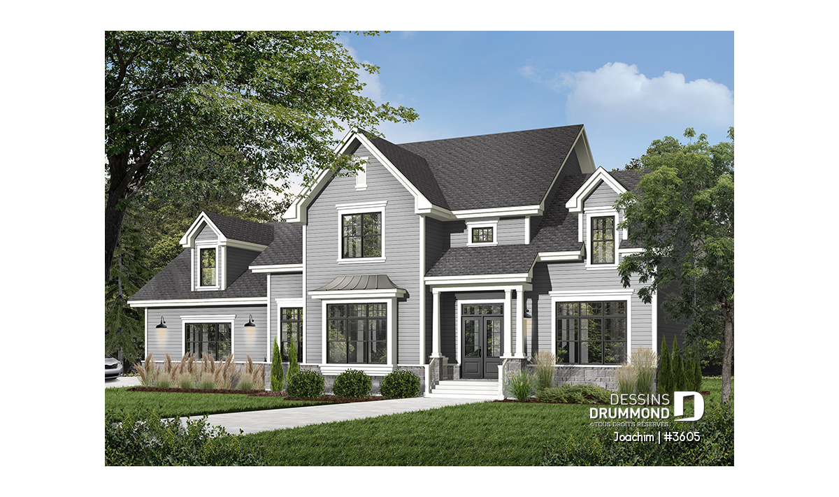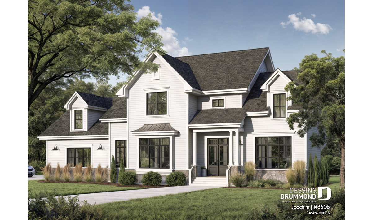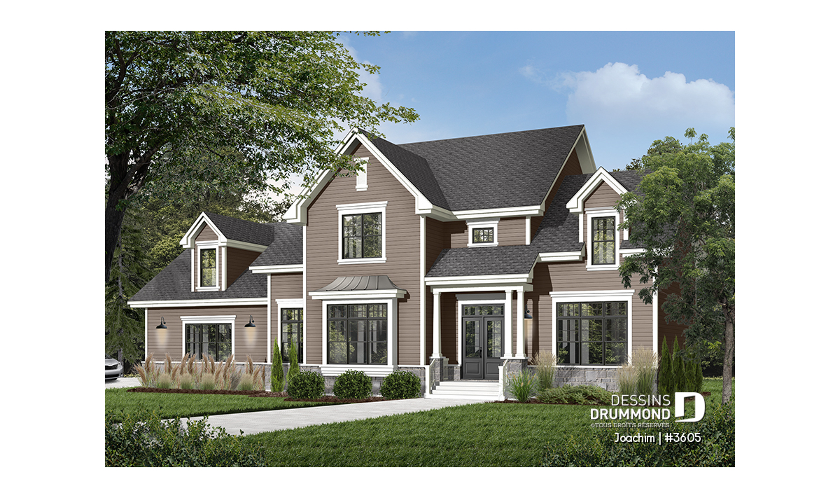 Garage triple avec trois portes de 10pi par 9pi facilitant l'accès des véhicules utilitaires. Plafond à 11pi au rez-de-chaussée et à 9 pi à l'étage. Retombées de plafond à la salle à manger et à la cuisine. Superbe suite chambre des maîtres avec foyer. Grande salle de séjour, abaissée de 15 po, avec foyer, mobilier intégré et accès au bel abri-moustiquaire prévu à l'arrière. Cuisine avec îlot lunch en guise de dînette. Vaste bureau pouvant facilement accueillir deux travailleurs à domicile. Trois grandes chambres à l'étage avec leur propre salle de bain. Couloir en mezzanine donnant sur la salle de séjour. Grand espace boni au-dessus du garage.