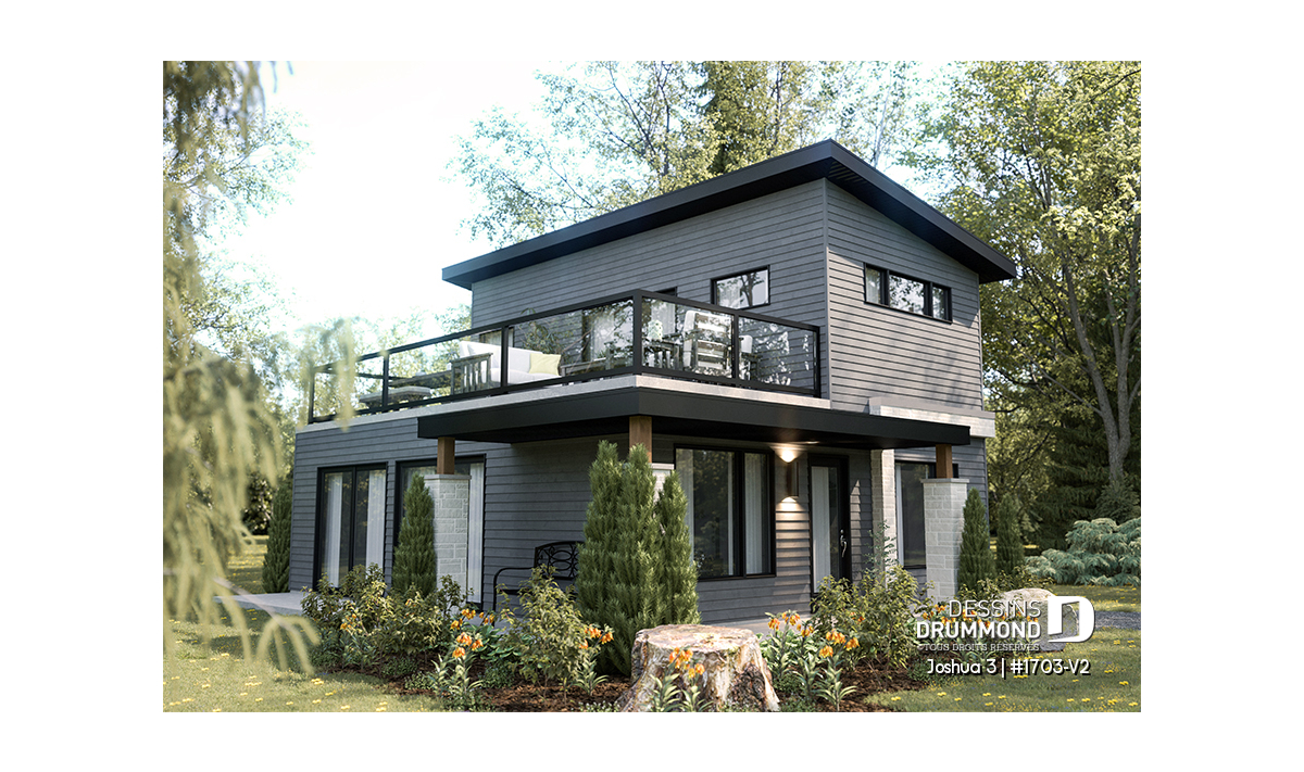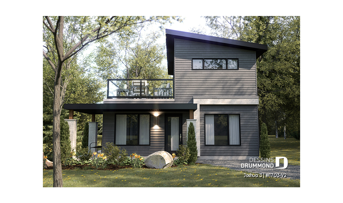 Plan de maison moderne compacte de 2 à 3 chambres, salles de bain et grande terrasse privée à l'étage!