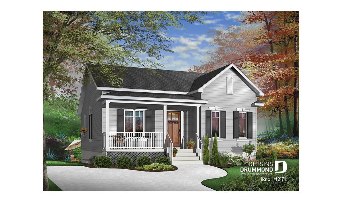 Plain de plain-pied économique, aire ouverte, entrée accueillante, cuisine avec îlot, grande s. bain