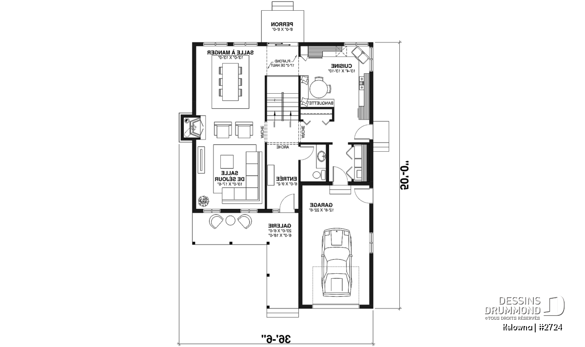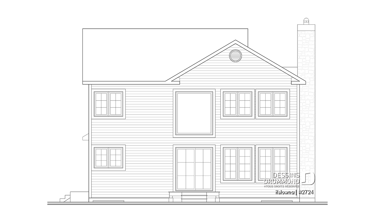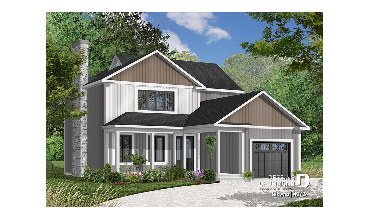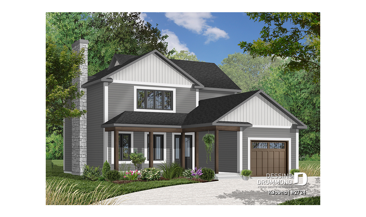 Foyer avec sortie possible au sous-sol, plafond en pente dans la chambre des maîtres, galerie abritée à l'avant, garage avec porte de service sur le côté et accès à la maison, fenestration généreuse au puits d'escalier, coin buanderie près de la cuisine, porte de service et porte-fenête près de la cuisine.