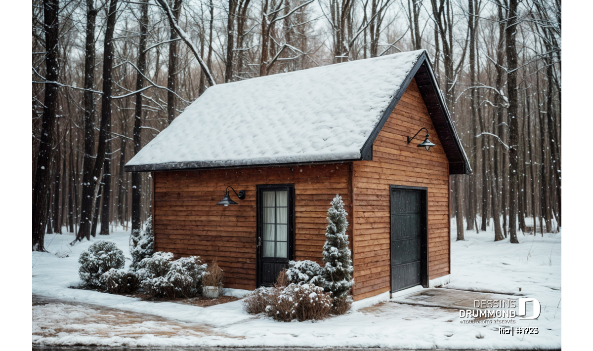 Plan de remise proposant une mini porte de garage afin de faciliter le rangement